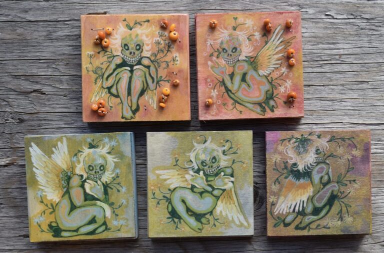 Evan creates with the intent to provoke thought and to inspire the contemplation of emotions. As Evan emerges into the world of fiber, glass, and illustrative work, fusing many mixed media together, his work expresses internalized emotions. Other important aspects of his work are, aspect of function, and the reusing of materials. Passionate hands on heavy media, exploring what was done before.